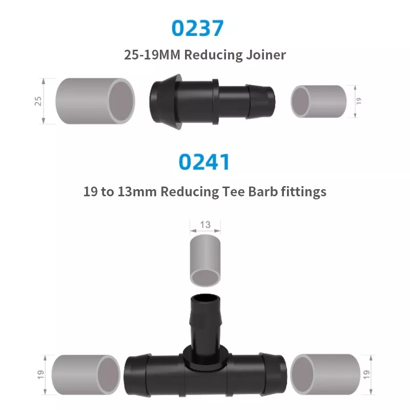 Obsługiwane są złącza barbowe 13 mm 19 mm 25 mm. Dostępne są niestandardowe rozmiary, kolory i konfiguracje.