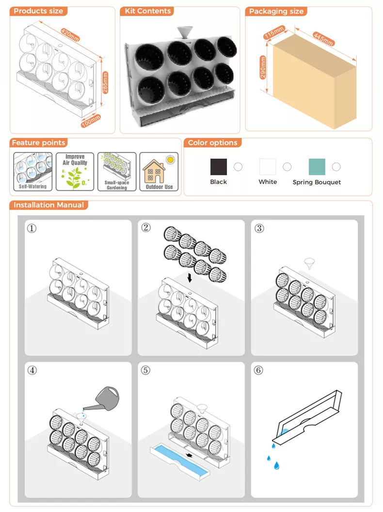 Nasz ogród na blacie kuchennym to pionowy ogród na biurko, składający się z ośmiu pojedynczych 3-calowych doniczek i wbudowanego wnętrza z funkcją samonawadniania. Pulpit ogrodowy Pixel to wstępnie zmontowany pionowy pulpit ogrodowy, który pozwala dodać trochę „zielonego akcentu” do domu i biura.