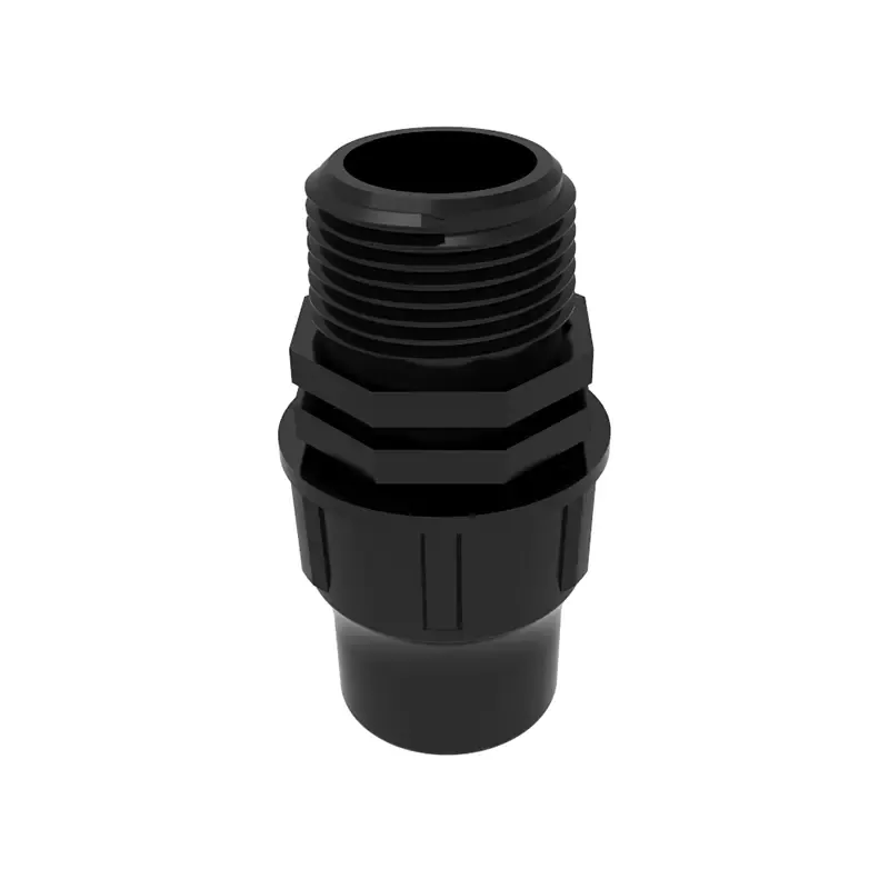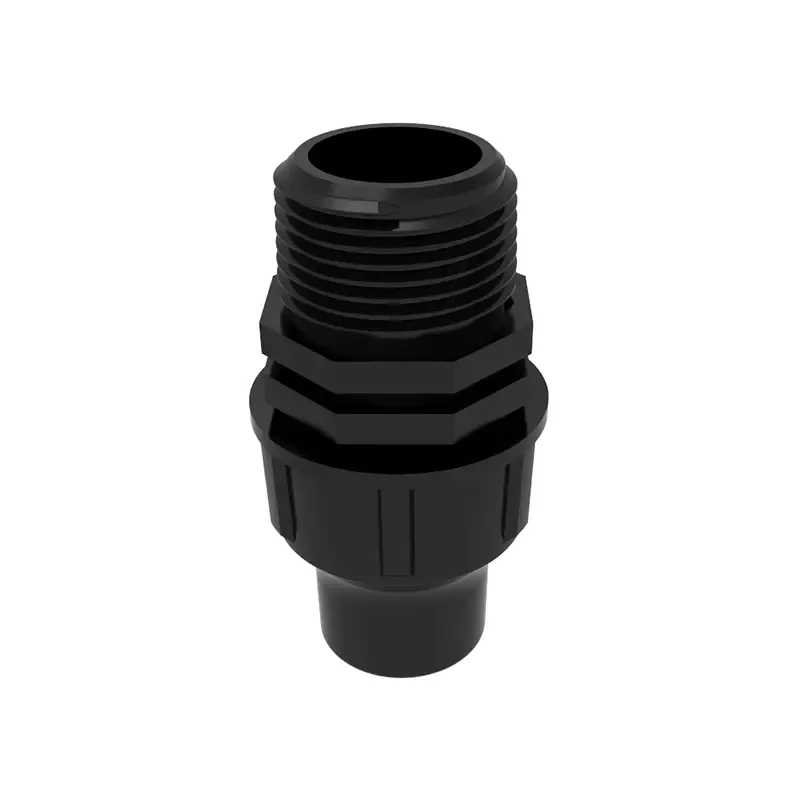 1, gwintowana konstrukcja blokująca bezpiecznie mocuje rury i złączki PE, aby zapobiec rozłączeniu pod wysokim ciśnieniem.
