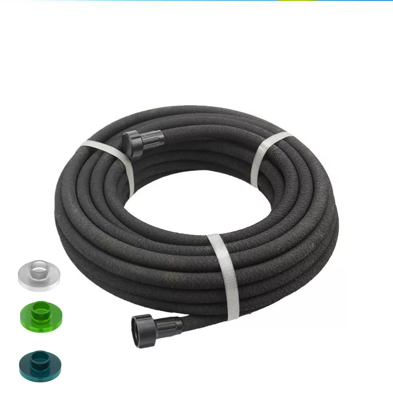 Charakterystyka węża przesiąkającego: 1. Szorstka tekstura z mikroporami – Ściana węża jest szorstka w dotyku i zawiera liczne drobne pory zapewniające stałą emisję wody. 2. Regulowana kontrola przepływu – Wydajność wody można regulować za pomocą ograniczników przepływu (przesłon kryzowych). 3, emisja na całej długości-cały wąż równomiernie uwalnia wodę, umożliwiając bezpośrednie umieszczenie wzdłuż stref korzeni roślin w celu ukierunkowanego nawadniania.