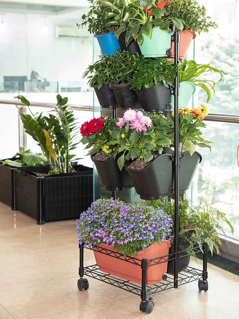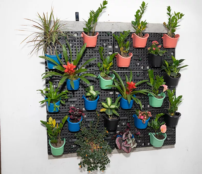 Ta samonawadniająca doniczka do sadzenia w pomieszczeniach jest połączona zarówno z pionowym wspornikiem ściennym ogrodowym Watex, jak i metalową mobilną zieloną ścianą Watex.