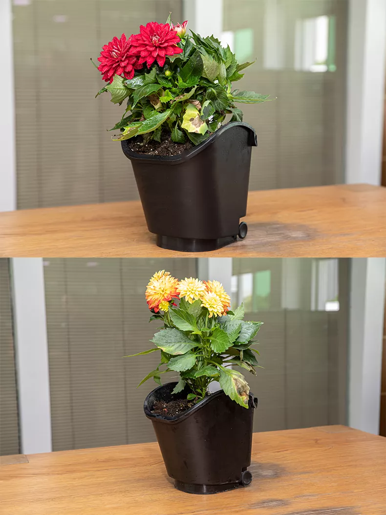 Doniczka samonawadniająca do wnętrz, ułatwiająca pielęgnację. Trzy rozmiary (duży, średni, mały) samonawadniających się doniczek pasują do różnych roślin. Wbudowany zbiornik na wodę oszczędza wodę, zmniejszając potrzebę częstego podlewania, oszczędzając czas, wysiłek i kłopoty.